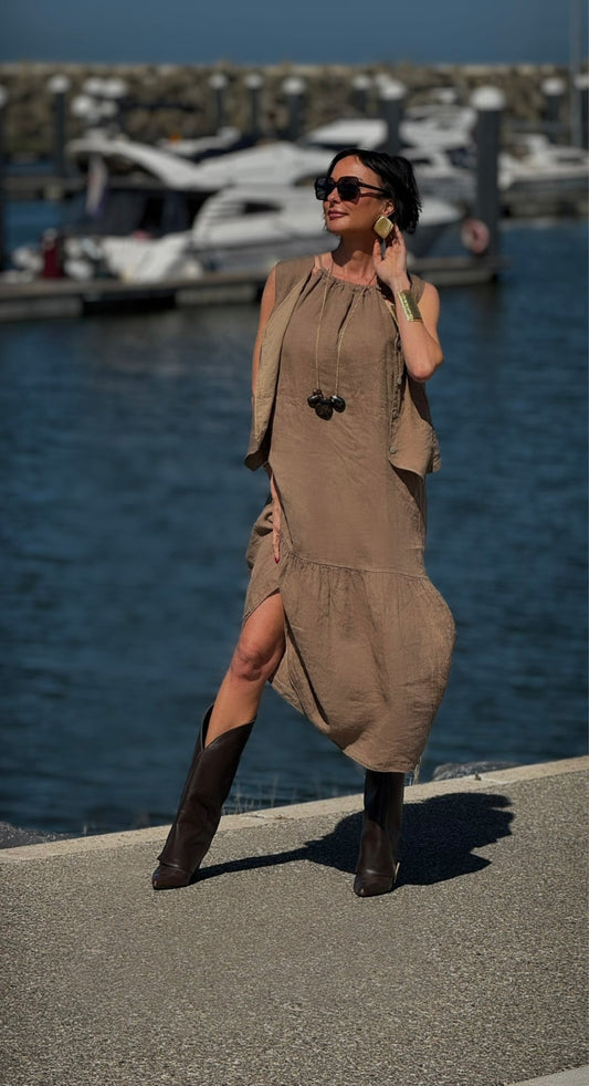 Dress Ina linnen camel