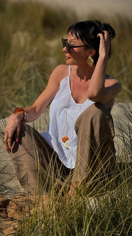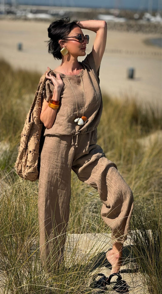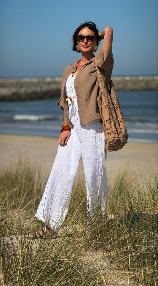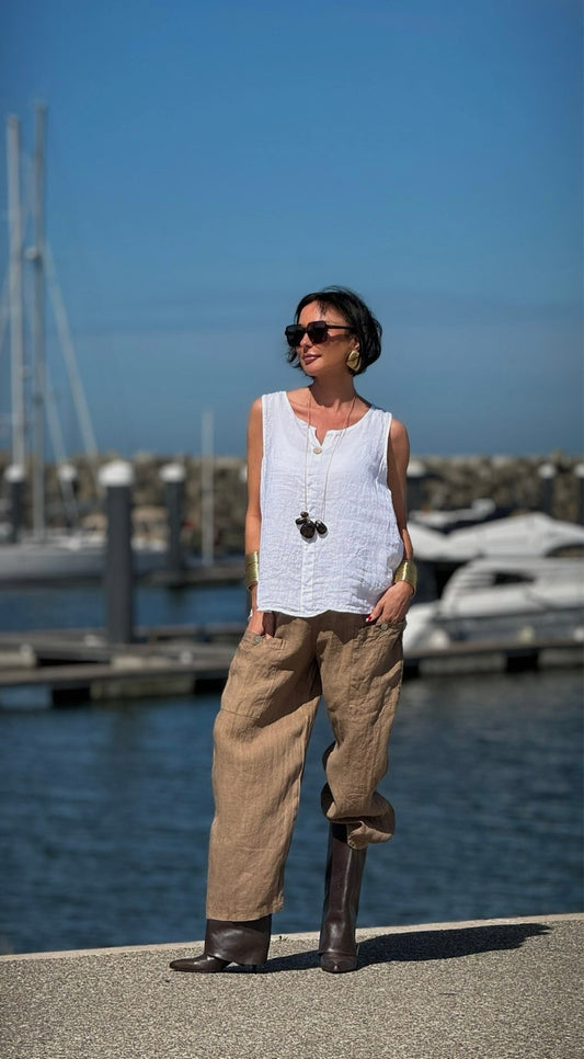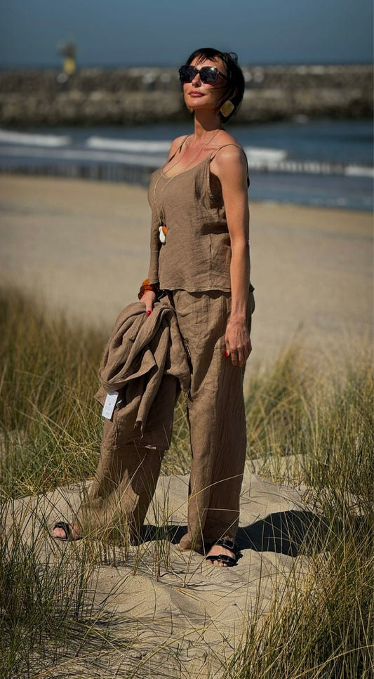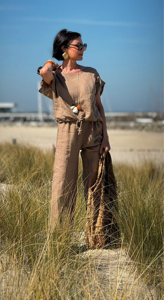 Top Ina linnen camel