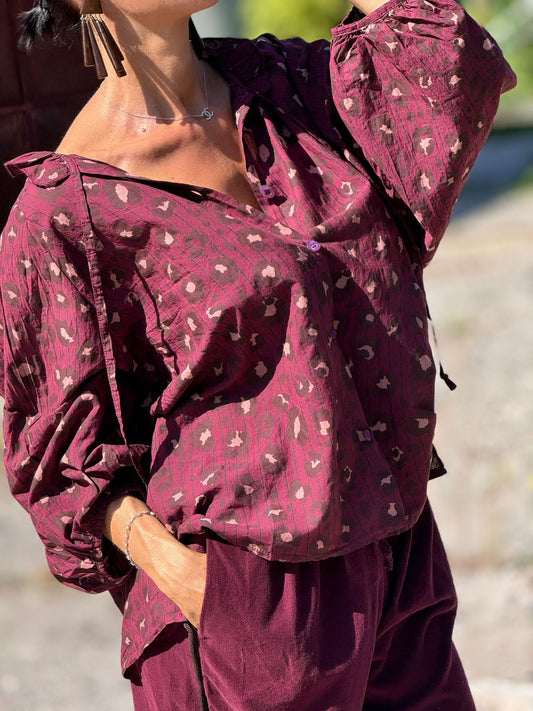 Blouse Selena leopard burgundy
