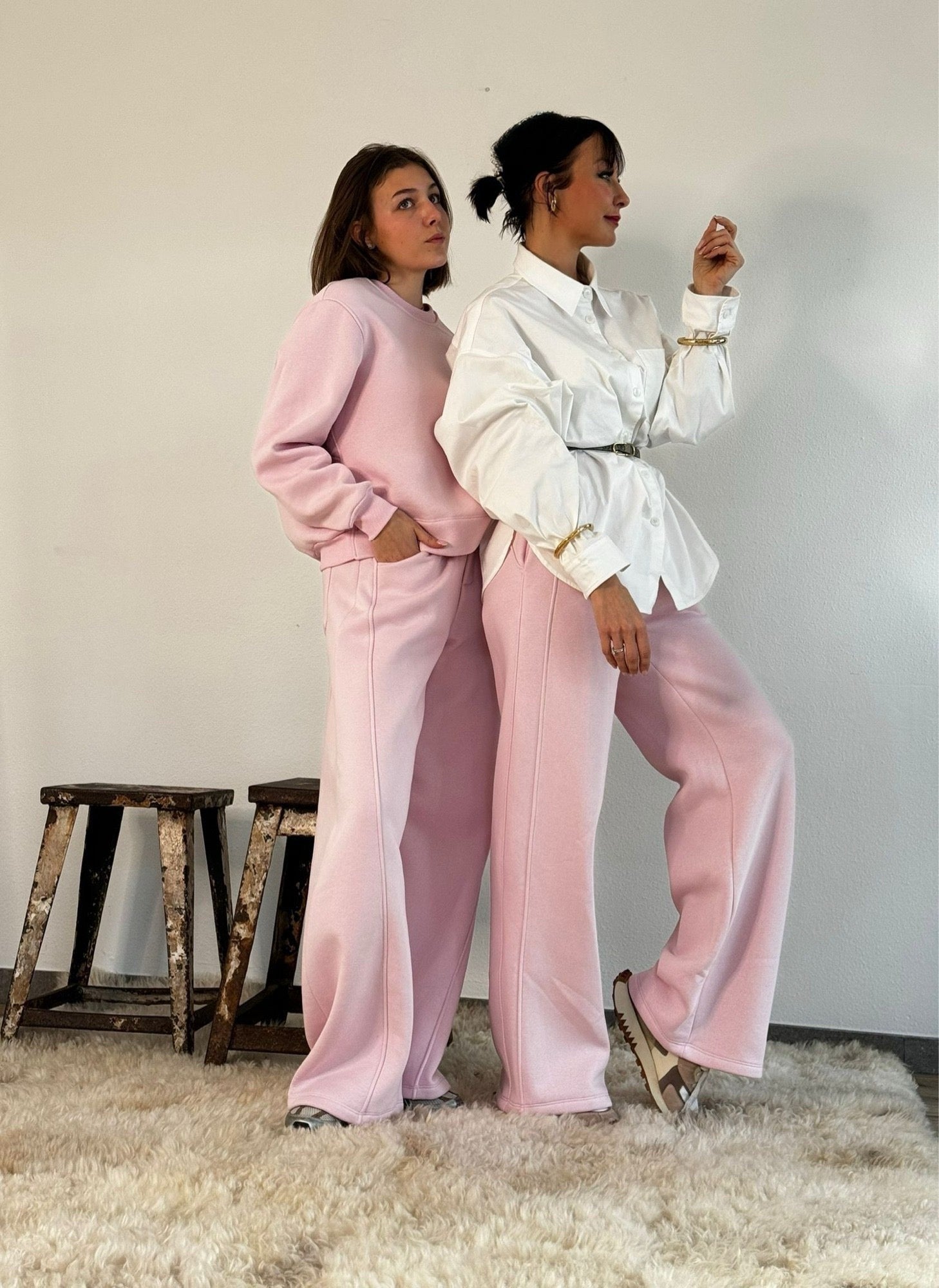 Pants jogging balloon in baby pink of cream